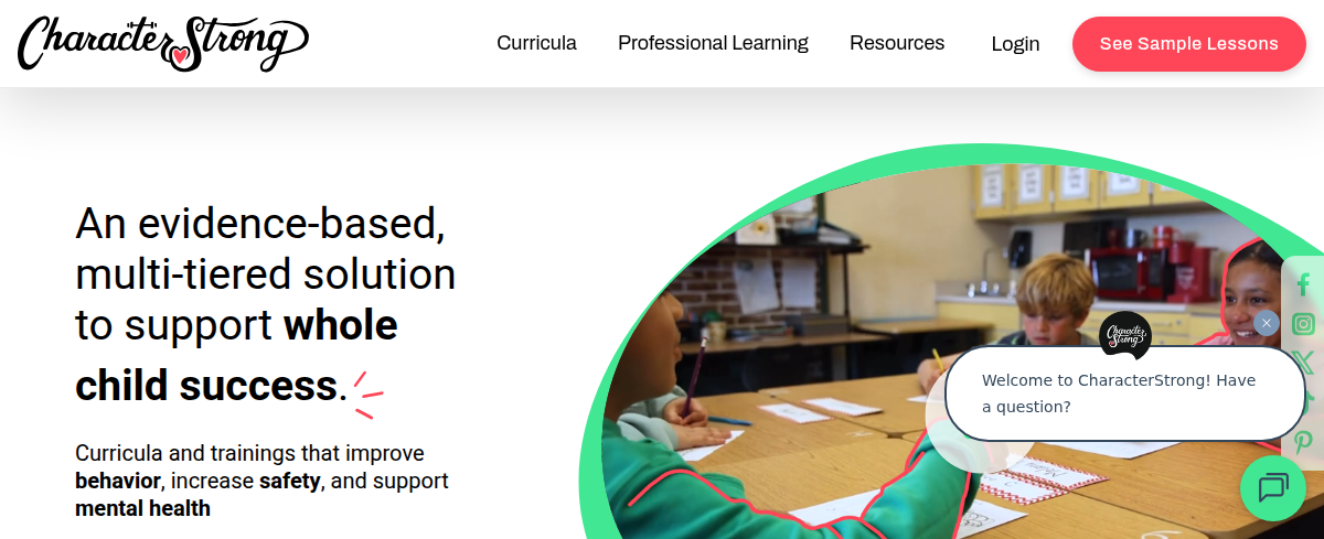 CharacterStrong provides Early Childhood, Kindergarten, Elementary, Middle School, High School social-emotional learning and character education curricula, focusing on growth mindset, purpose, and belonging. They offer teacher professional development and data dashboards to support positive school culture and student well-being, fostering essential life skills.