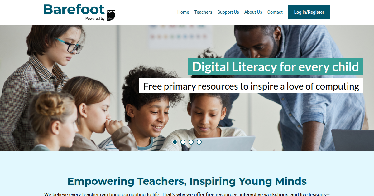 Barefoot Computing empowers primary school teachers to confidently teach computer science with free resources, interactive workshops, and live lessons. Supporting educators from early years through age 11, it helps inspire young minds and build digital literacy skills. The platform offers engaging materials and professional development opportunities.