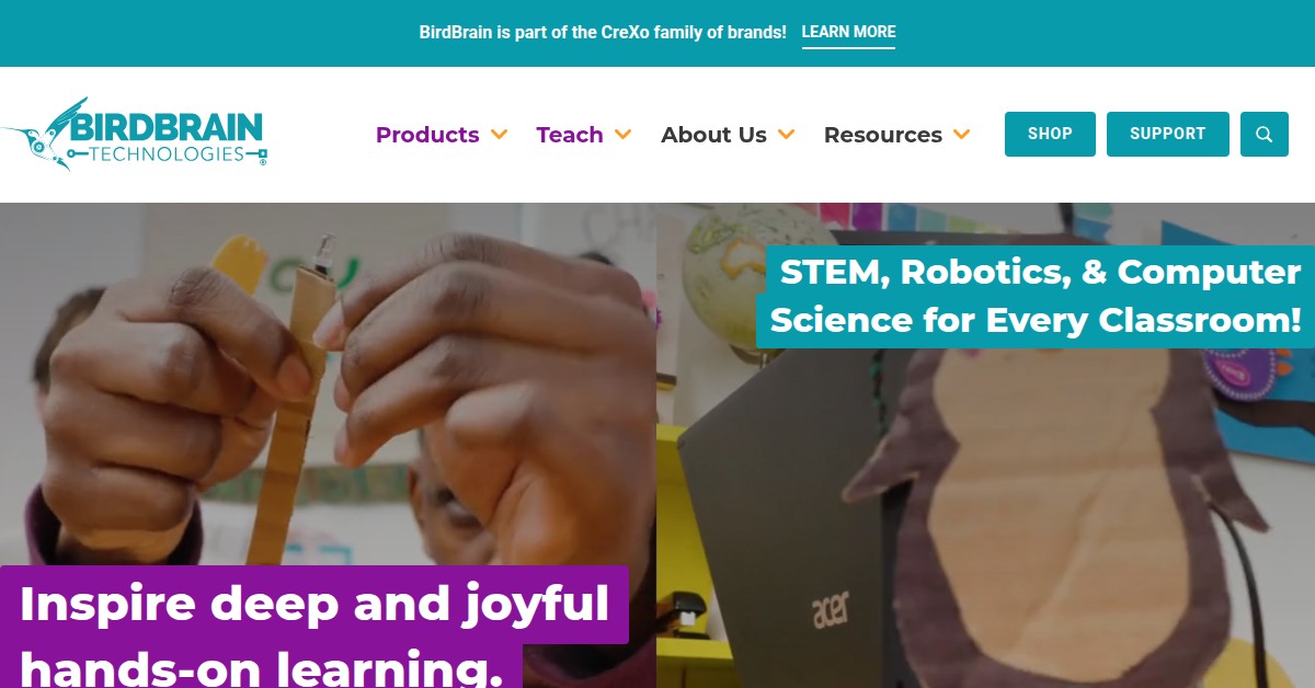 BirdBrain Technologies offers hands-on robotics and computer science tools, including Hummingbird, Finch, and Owlet, for grades Kindergarten, Elementary, Middle school, High school. Developed at Carnegie Mellon, these products inspire joyful, project-based learning in STEM. They provide free learning materials and teacher intro courses to support educators in integrating technology across subjects.