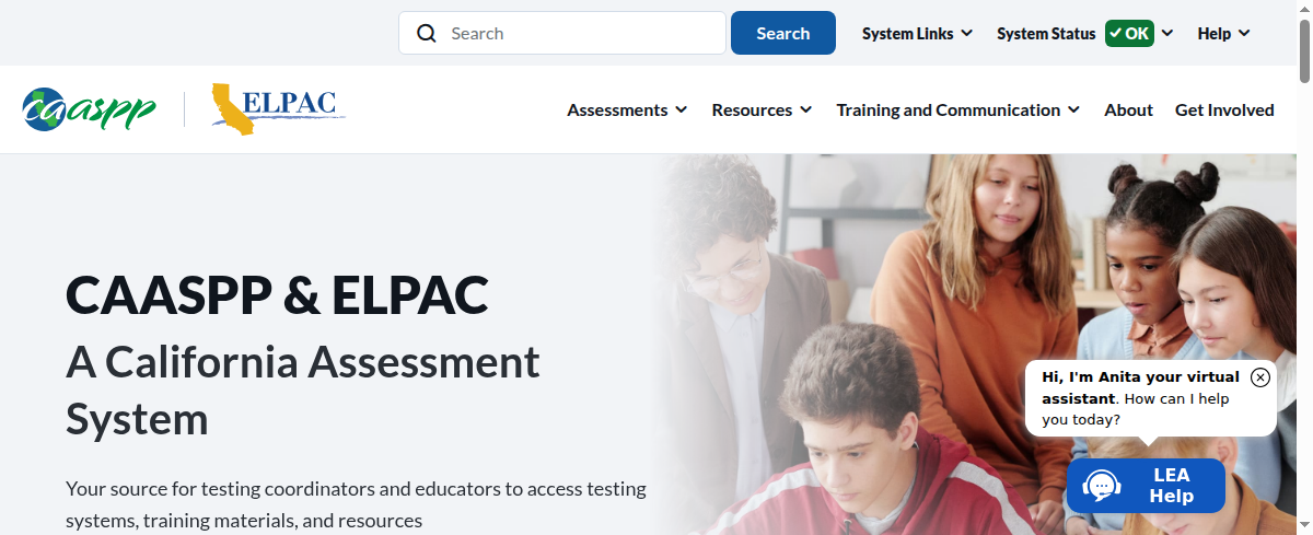 CAASPP ELPAC provides a comprehensive California assessment system for Kindergarten, Elementary, Middle School, High School educators and administrators. It offers resources, training, and tools for administering statewide assessments, accessing reporting systems, and utilizing interim assessments. The platform supports high-quality teaching and learning through standardized testing and performance data.
