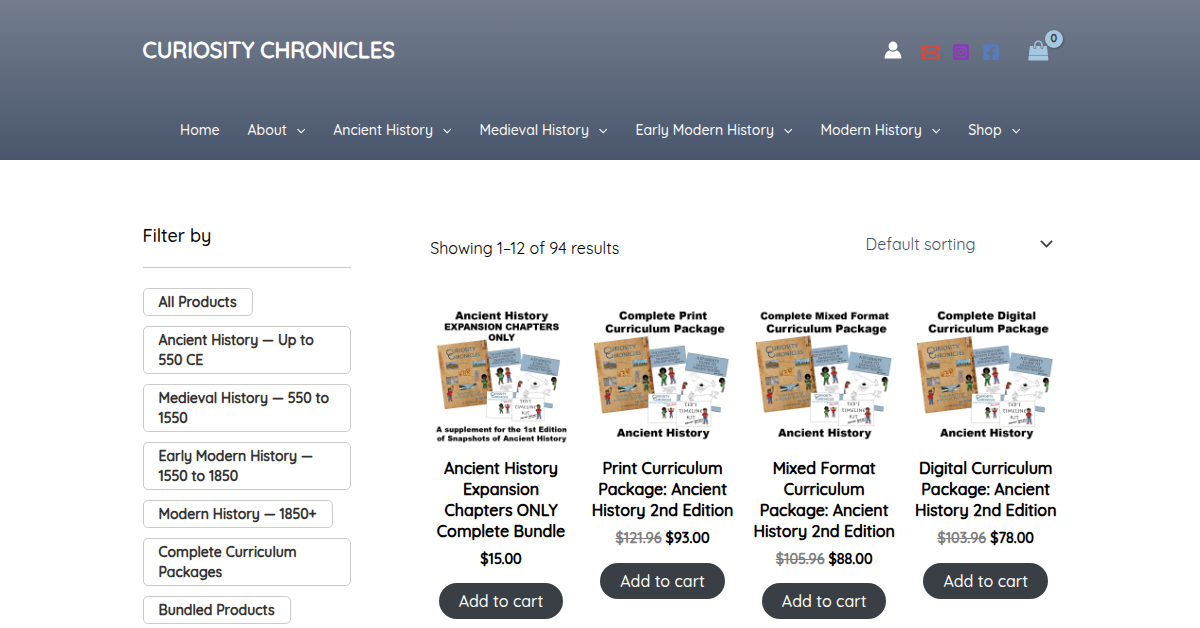 Curiosity Chronicles offers engaging, secular global history curriculum for grades 1-10. Their multidisciplinary approach includes hands-on activities, art, science, and critical thinking. Designed for neurodivergent learners, the curriculum features dialogue-based lessons and expansion materials for flexible, family-style learning, promoting a non-Eurocentric perspective.