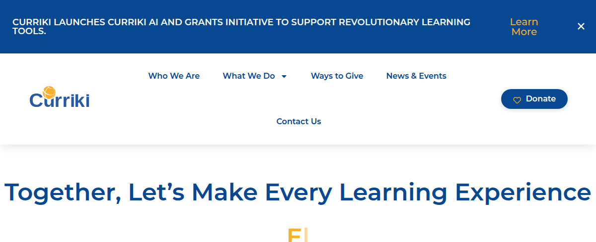 Curriki is a nonprofit dedicated to improving online education through technology. They provide Open Educational Resources (OER), including AI-powered tools and interactive learning content, with standards alignment and pacing guides for Kindergarten, Elementary, Middle school, High school lesson planning. Their mission is to unlock learning potential globally.