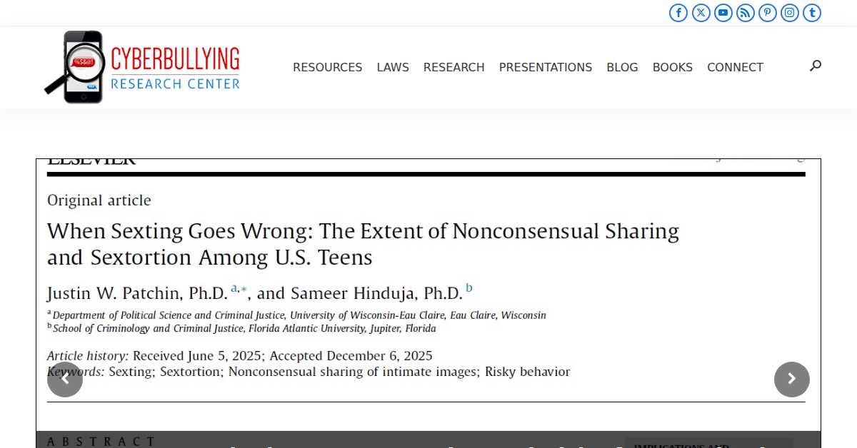 The Cyberbullying Research Center offers critical resources and research on cyberbullying, online safety, and digital well-being for youth and adults. It provides insights into identification, prevention, and response strategies, covering topics like sexting, cyberstalking, and the mental health impacts of online aggression. The center supports educators, parents, and students with data-driven information and presentations.