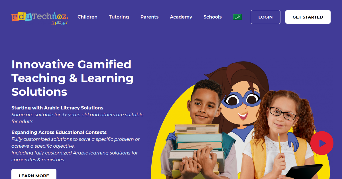 eduTechnoz provides innovative, gamified Arabic literacy solutions for learners from age 3 to adults. They offer online courses, tutoring, and an AI-enhanced app for individuals, as well as customized platforms for schools and ministries. Their resources support reading, writing, comprehension, and fluency in Arabic.