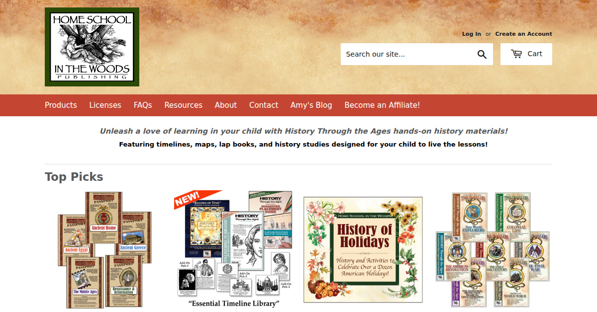 Home School in the Woods provides hands-on, downloadable history resources for K-12 homeschoolers. Their materials include lapbooks, timelines, maps, and activity studies covering ancient, medieval, renaissance, modern, U.S., and world history. Engage students with creative projects designed to make history come alive.