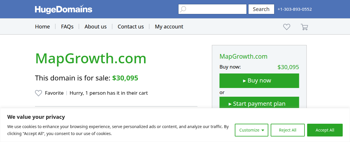 HugeDomains offers MapGrowth.com for sale, providing a seamless and secure domain-buying experience with financing options and a 30-day money-back guarantee. While not an operational learning resource itself, this domain presents an opportunity for educators to develop a valuable online educational platform.