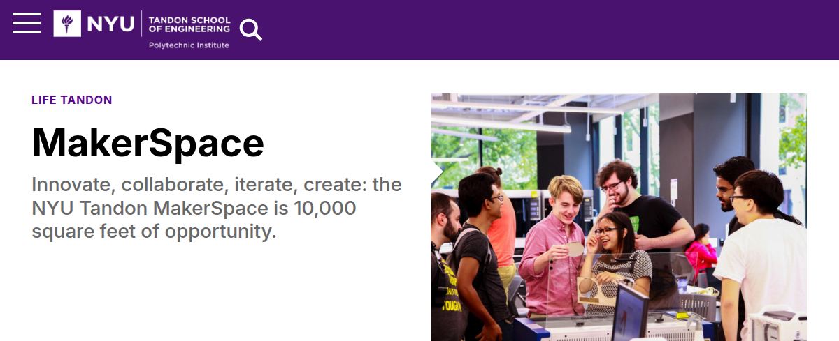 NYU Tandon MakerSpace & Design Lab offers Early Childhood, Kindergarten, Elementary, Middle School, High School outreach programs, design sprints, and educator engagement events. This university-based makerspace provides hands-on learning experiences in STEM, fostering innovation and critical thinking for students and professional development for educators.