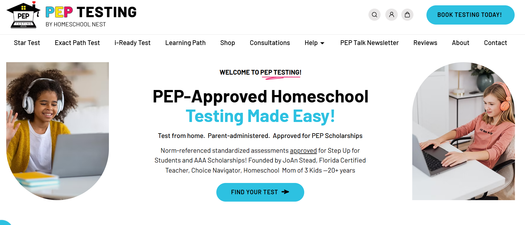 PEP Testing offers online, parent-administered, norm-referenced assessments for Kindergarten, Elementary, Middle school, High school homeschool students. Approved for Florida’s PEP, Step Up for Students, and AAA Scholarships, the platform provides flexible scheduling and fast results. It features tests like Exact Path, i-Ready, and Star, along with personalized learning paths to support academic growth.