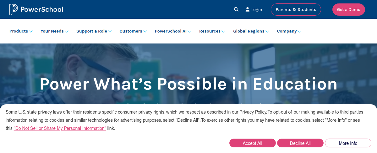 PowerSchool provides innovative K-12 software and cloud-based solutions to enhance educational outcomes and streamline school operations. Their comprehensive platform connects central offices, classrooms, and homes, offering tools for student information, learning management, assessment analytics, and communication. Dedicated to security and trust, PowerSchool supports a cohesive learning environment for students, educators, and administrators.