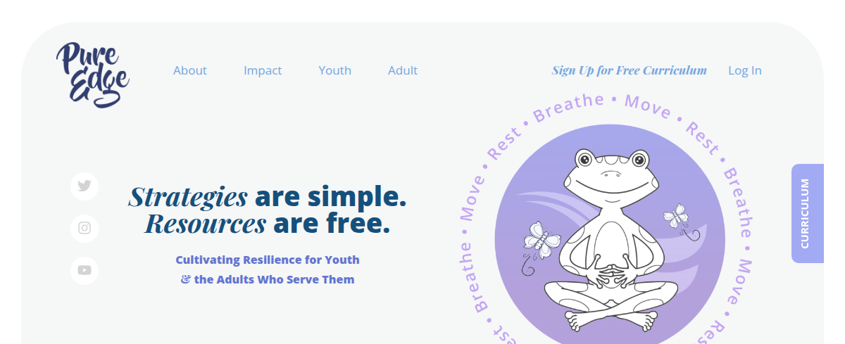 Pure Edge Inc. provides free social-emotional learning (SEL), mindfulness, and stress management resources for Early Childhood, Kindergarten, Elementary, Middle School, High School students and educators. They offer curricula, training, and an educational app to cultivate resilience and well-being. Resources are evidence-based and available in multiple languages.