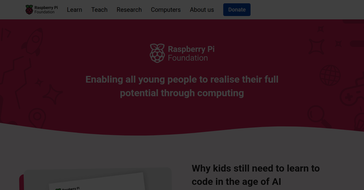 The Raspberry Pi Foundation empowers young people to learn, teach, and create with computing. They provide free curricula, classroom resources, and professional development for teachers, focusing on coding, computer science, and AI education through engaging projects and initiatives.