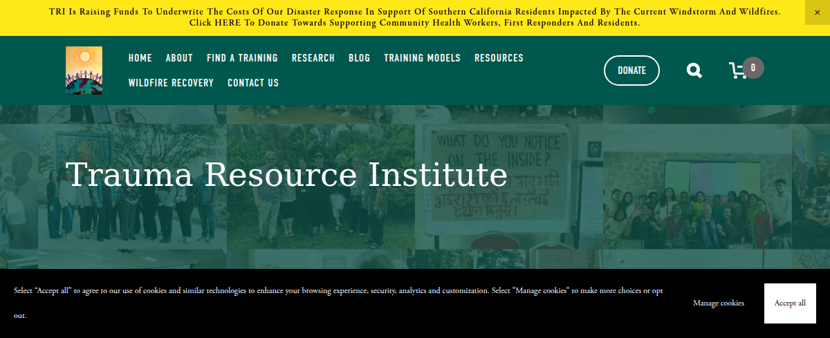 The Trauma Resource Institute (TRI) is a non-profit offering training in trauma-informed care and resiliency. They provide wellness skills to help individuals and communities manage stress and trauma, focusing on emotional regulation and mental well-being. Their programs are designed for professionals and community members worldwide.