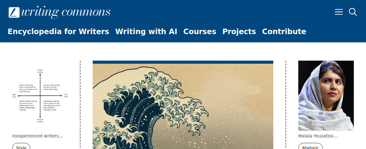 Writing Commons offers open-education chapters and courses focused on rhetoric, style, and multimodal composing. It provides resources for understanding and improving writing, including guidance on inclusive language, argument construction, and the impact of AI on writing. Teachers can excerpt content for high school classes and higher education.